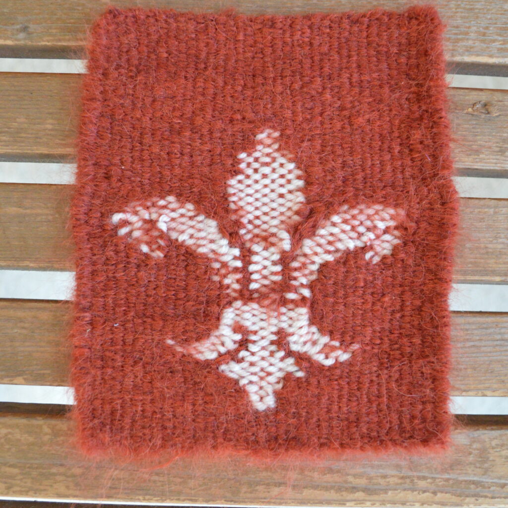 This is a handwoven block that I made using a potholder loom.