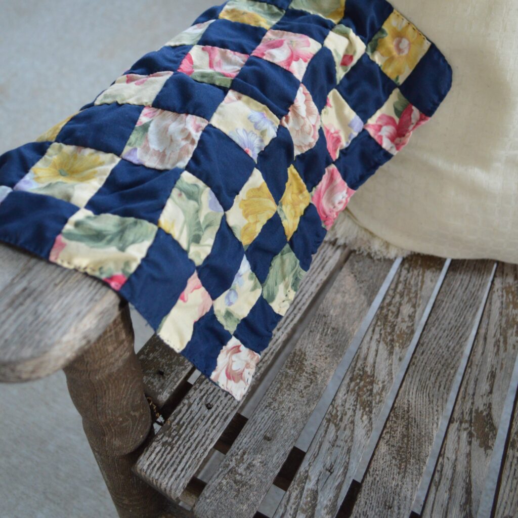 This is a patchwork cloth that I sewed by hand. I call it a quilt-cloth, because it’s like a quilt without any batting, just two layers of fabric.